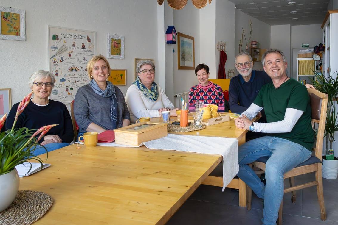 Beim jüngsten Vorstandstreffen gab es dann eine weitere Neuerung: Die langjährigste Mitarbeiterin des Sternenzelts, die zweite Vorsitzende Susanne Overbeck (links auf dem Bild), tritt bei der ebenfalls stattgefundenen Vorstandswahl nicht mehr für das Amt im Vorsitz an. Sie bleibt dem Sternenzelt aber u. a. in der Rolle der Beisitzerin erhalten. Ihren Posten übernimmt nun Sabine Schrade (3. von links), die gleichsam seit vielen Jahren u. a. die Waldtrauergruppe leitet. Damit ist auch der neue Vorstand definiert: