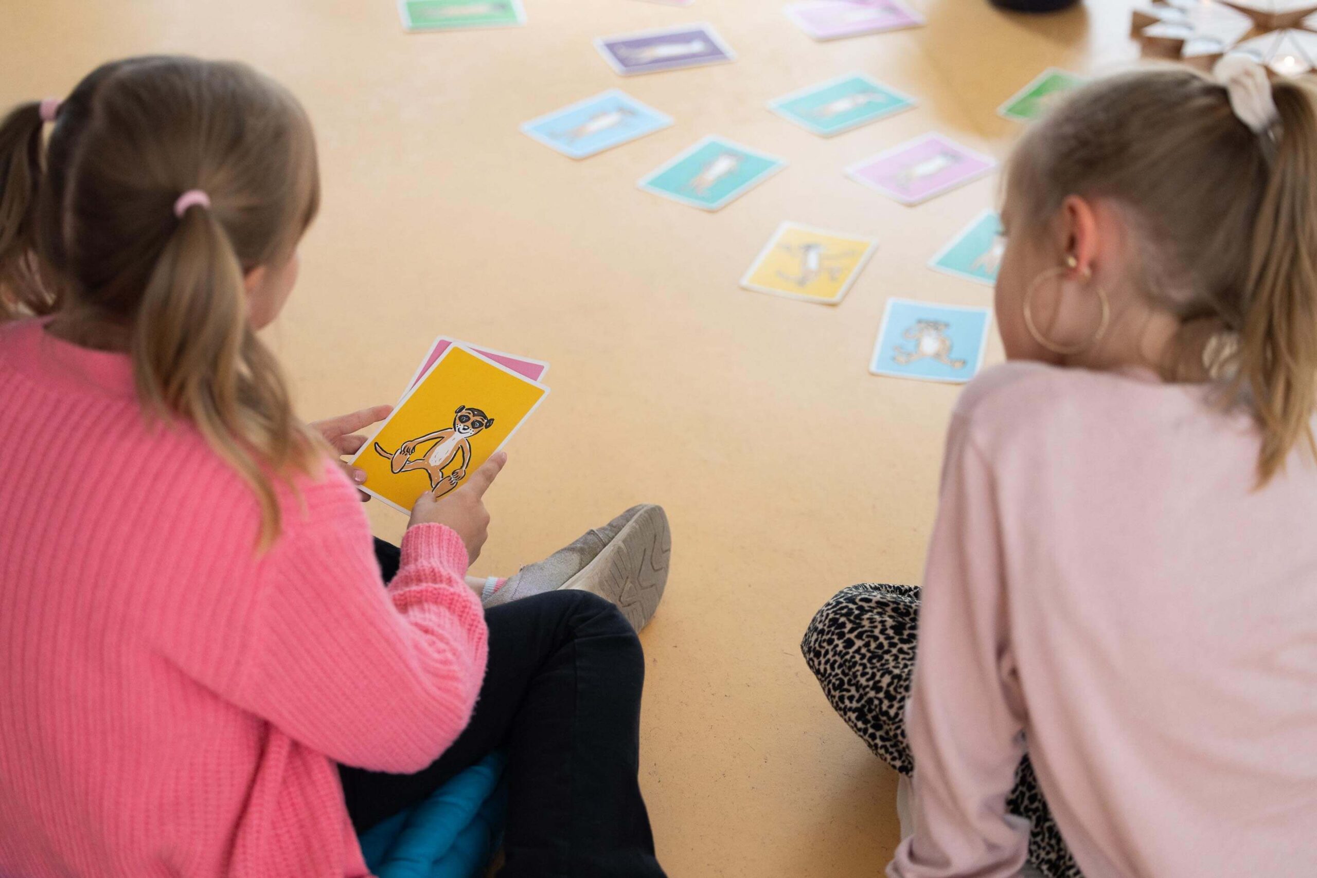 Dafür liegen auf dem Boden farbenfrohe Karten mit kleinen Erdmännchen, die lachen, grübeln, traurig schauen oder wütend wirken. Jedes Kind darf sich eine Karte aussuchen – die, die am besten zur eigenen Stimmung passt. „Diese Karten helfen den Kindern, Worte für ihre Gefühle zu finden“, erklärt Nicole Peters-Bokelmann, die 1. Vorsitzende des Vereins. „Sie bieten viele Möglichkeiten, sich auszudrücken. Und es gibt dabei kein Richtig oder Falsch.“